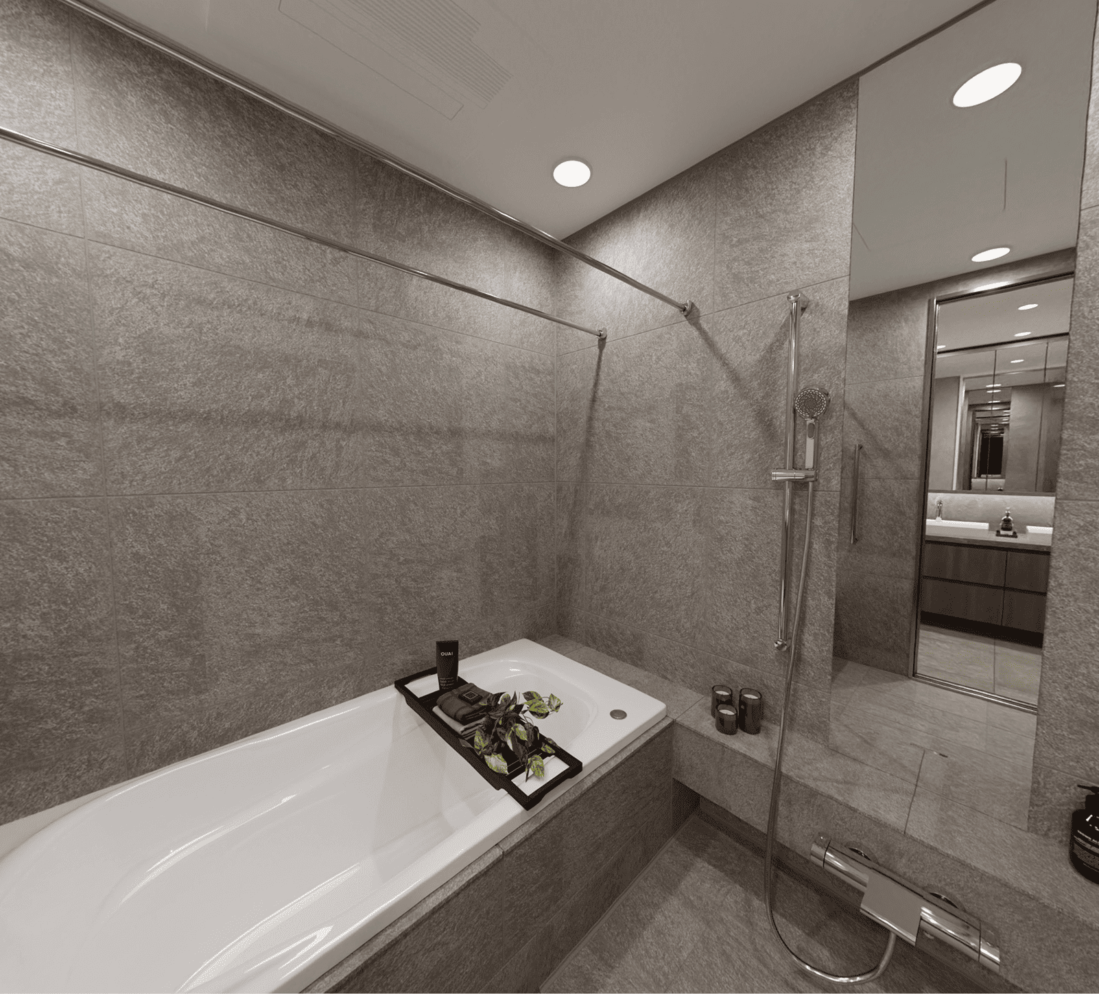 1952年にドイツで創業し、ヨーロッパを代表する浴槽メーカーを採用。有機的で流れるような曲線デザインのみで構成されたオーバルモデル。シャープな極薄リムが特徴。