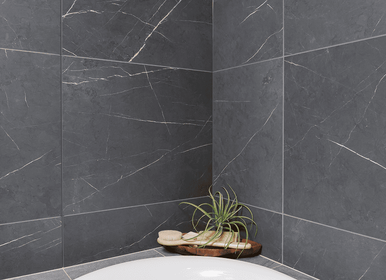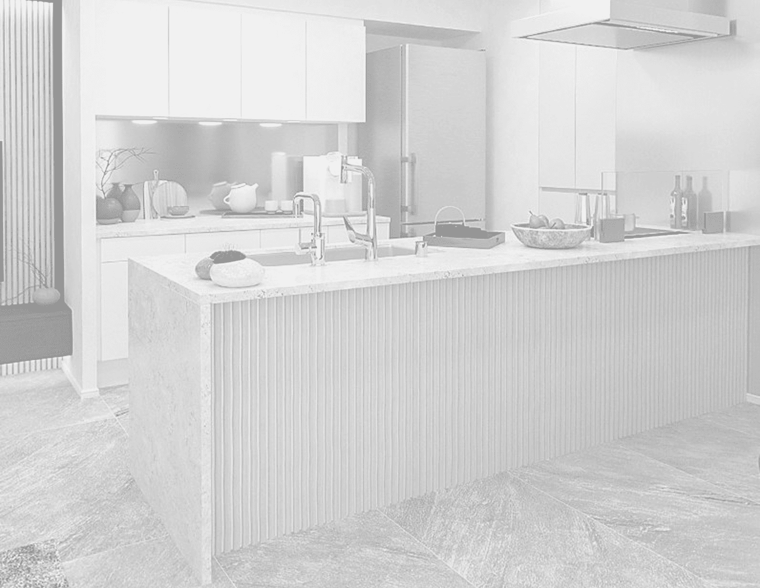 美しい大理石をイタリア最高峰の技術で再現したリビエラ製の大判タイルを採用。
