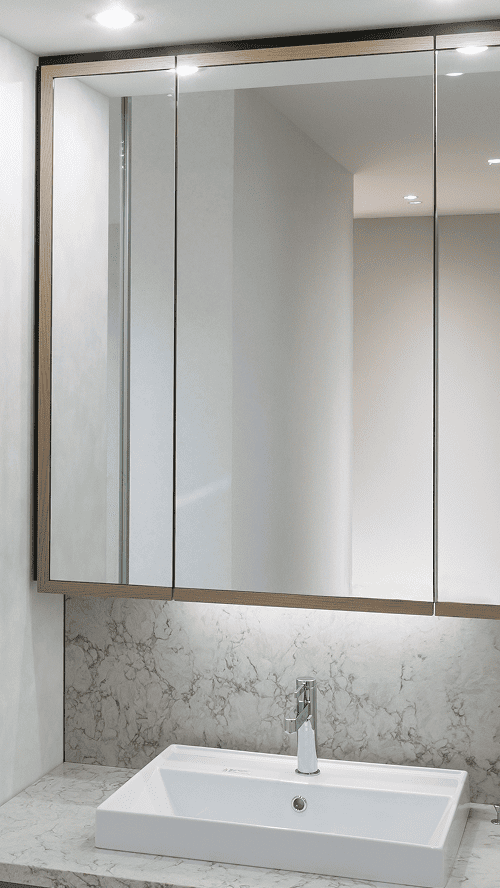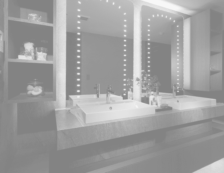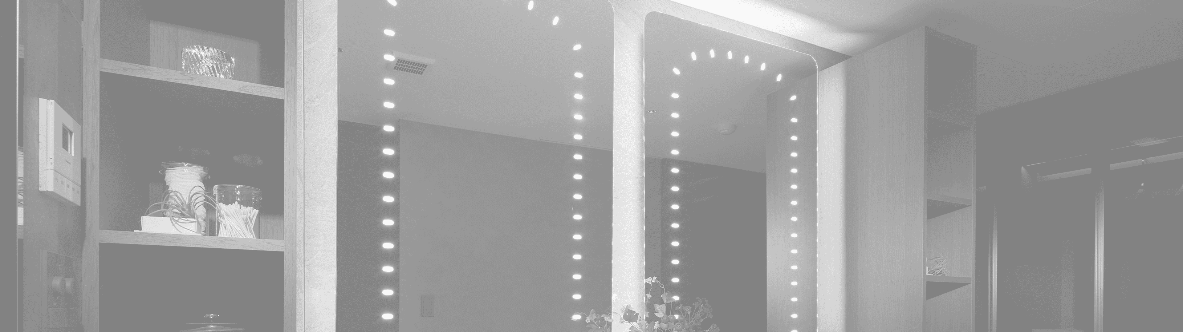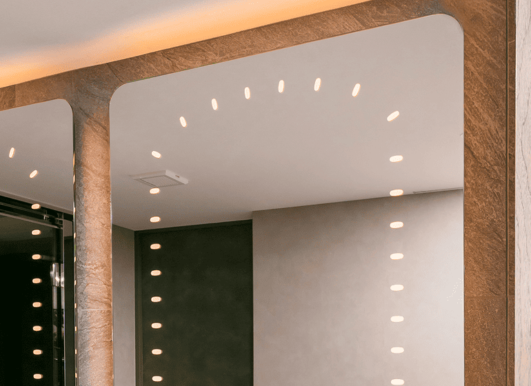 ホシノアーキテクツデザインのアーチ状内照明付きミラーを標準採用。洗面室でもラグジュアリーで印象的な空間を演出。