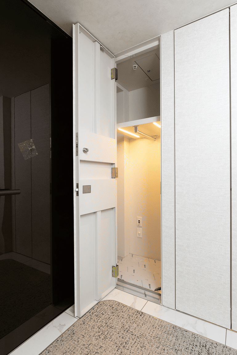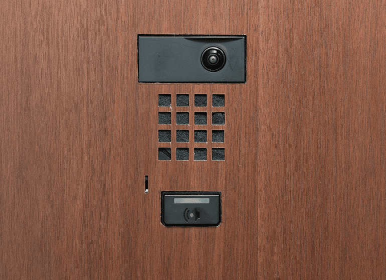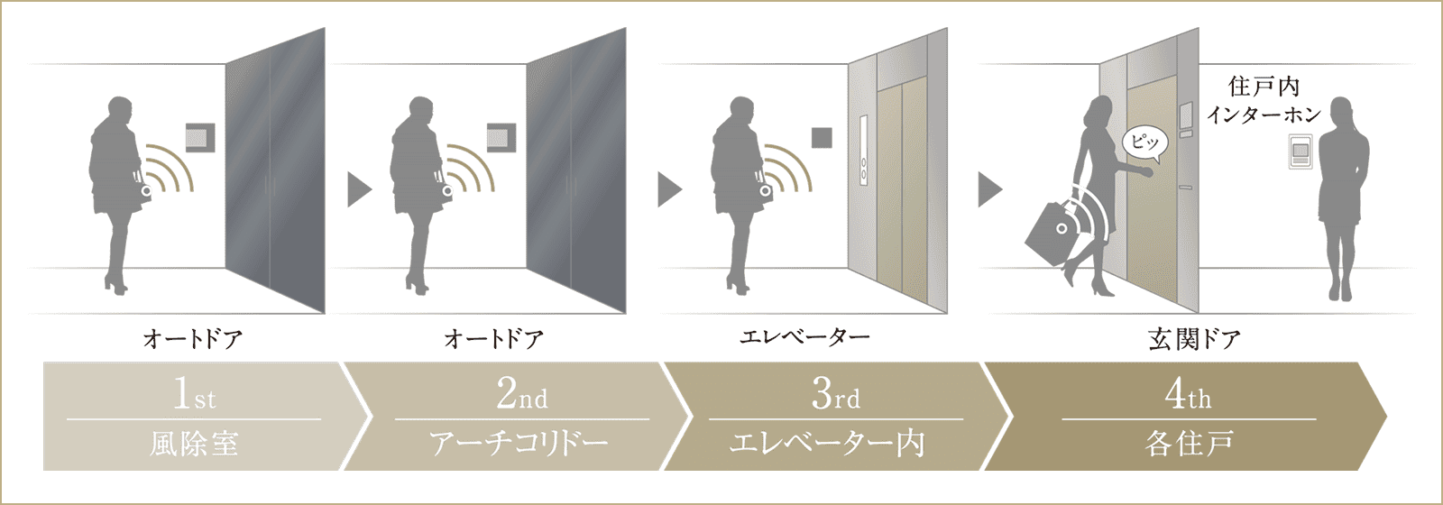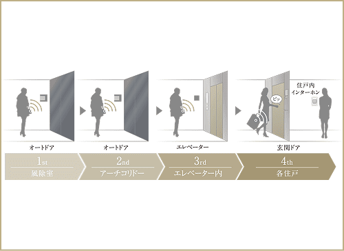 風除室およびマンション共用部に入る際のセキュリティチェックは、非接触による認証方式を採用しています。