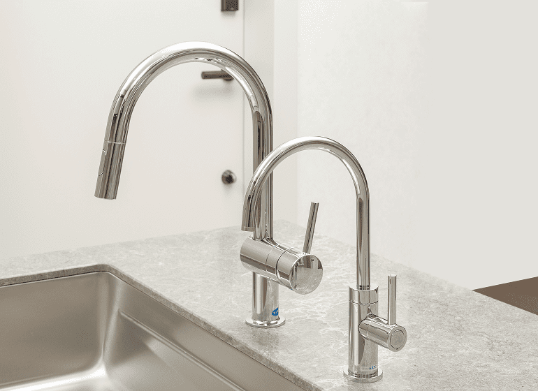 1936年創業、水栓金具のパイオニアカンパニー。キッチンインテリアのワンポイントになる美しいフォルムのグースネック水栓です。