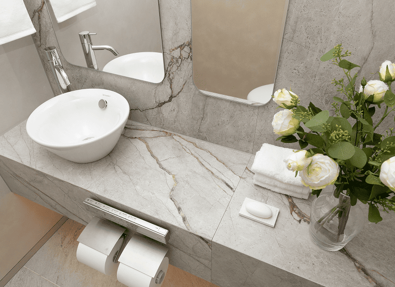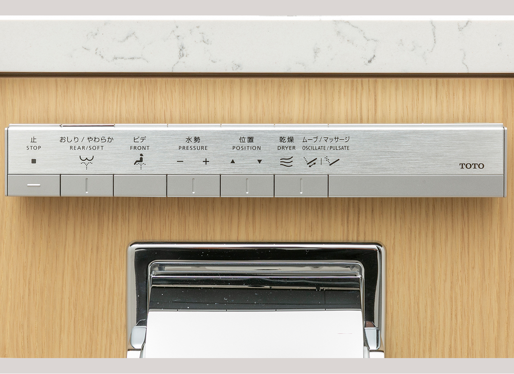 トイレカウンターにもイモラ製セラミックタイルを贅沢に使用。上質なデザインで恒久的な美しさを維持。
